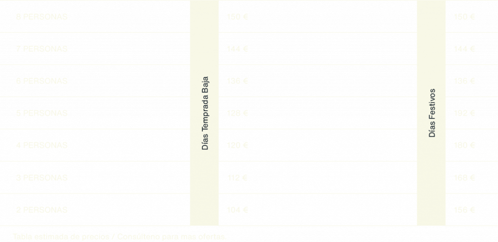 Esta tarifa puede varias en fin de semanas festivos. Consulta precios.